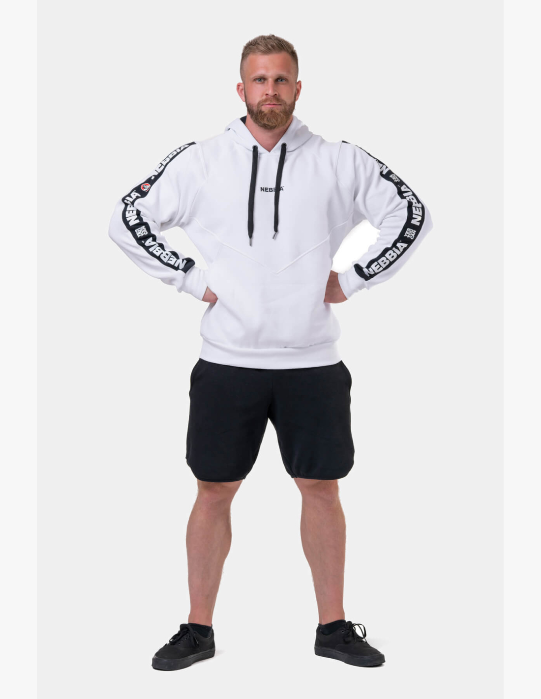 The best inspiration for true bodybuilding enthusiasts comes in our new retro edition 1965. The Unlock the Champion men's hoodie combines the design of the golden era with modern technologies. The hoodie is crafted down to the smallest detail, which everyone will appreciate. A stylish practical pocket, which acts as a design stitch, is located at the front. The hood is complemented by a drawstring. Cuffs adorn the sleeves as well as the bottom. A unique cotton jersey material forms the inner part, providing a feeling of comfort. The outer material is ribbed, wind-resistant, and cold-resistant. NEBBIA piping with the Mr. Olympia logo outlines the sleeves. A discreet NEBBIA logo shines on the chest.