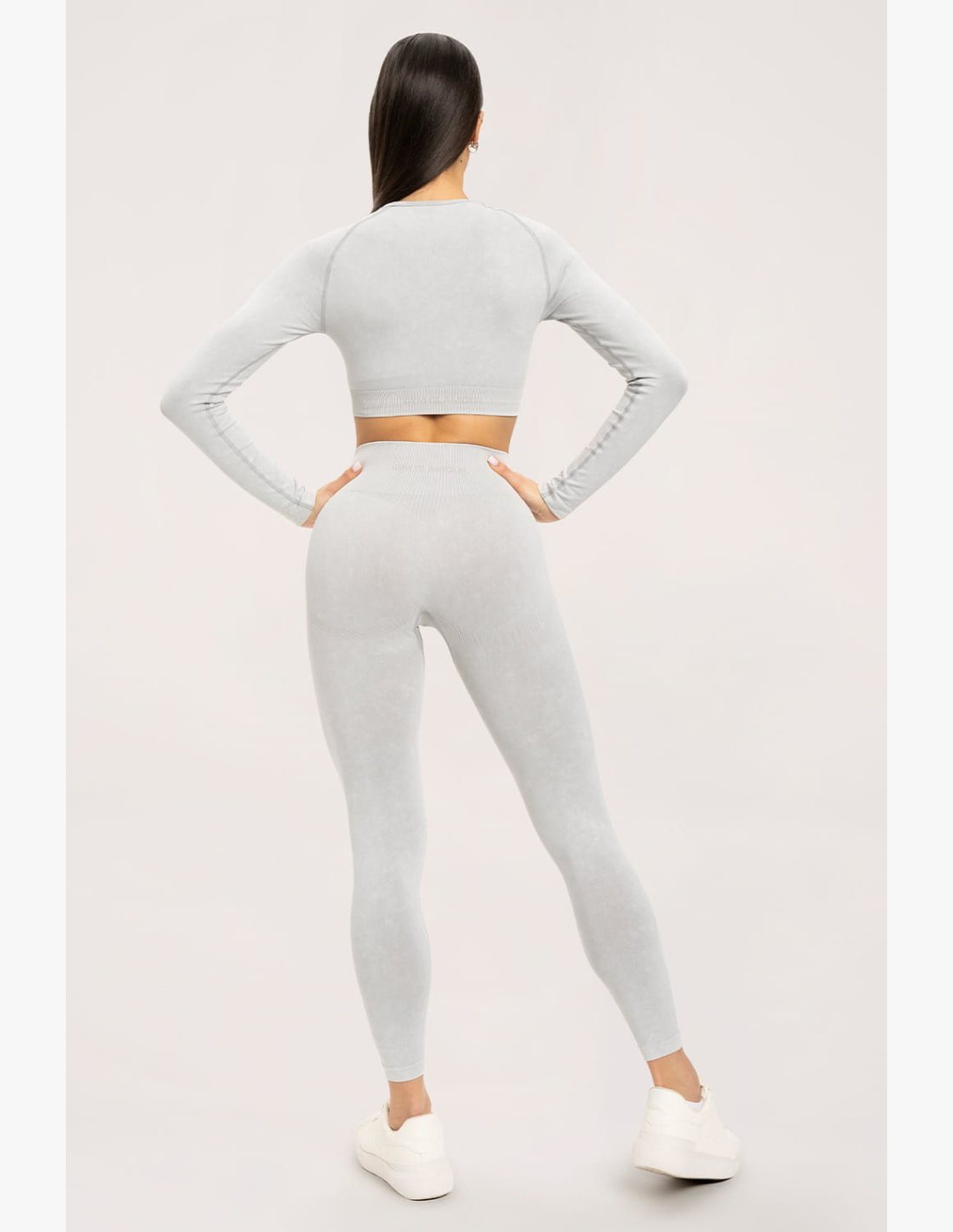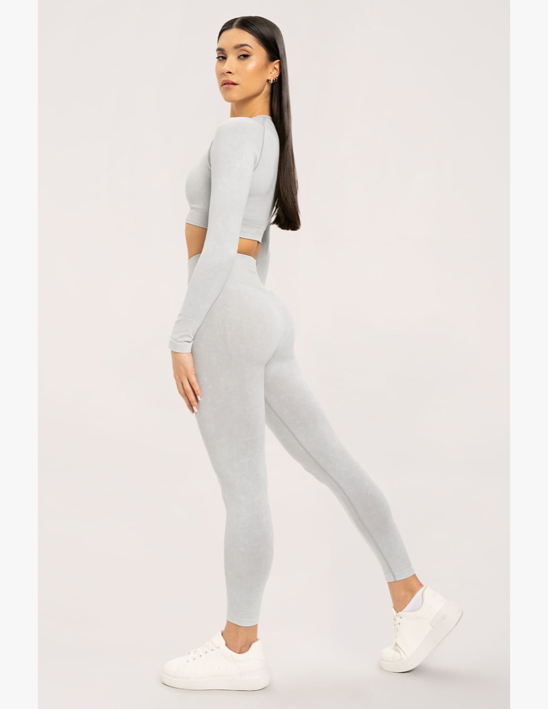 Seamless women's leggings with a washed effect for style and comfort during sports and everyday wear.