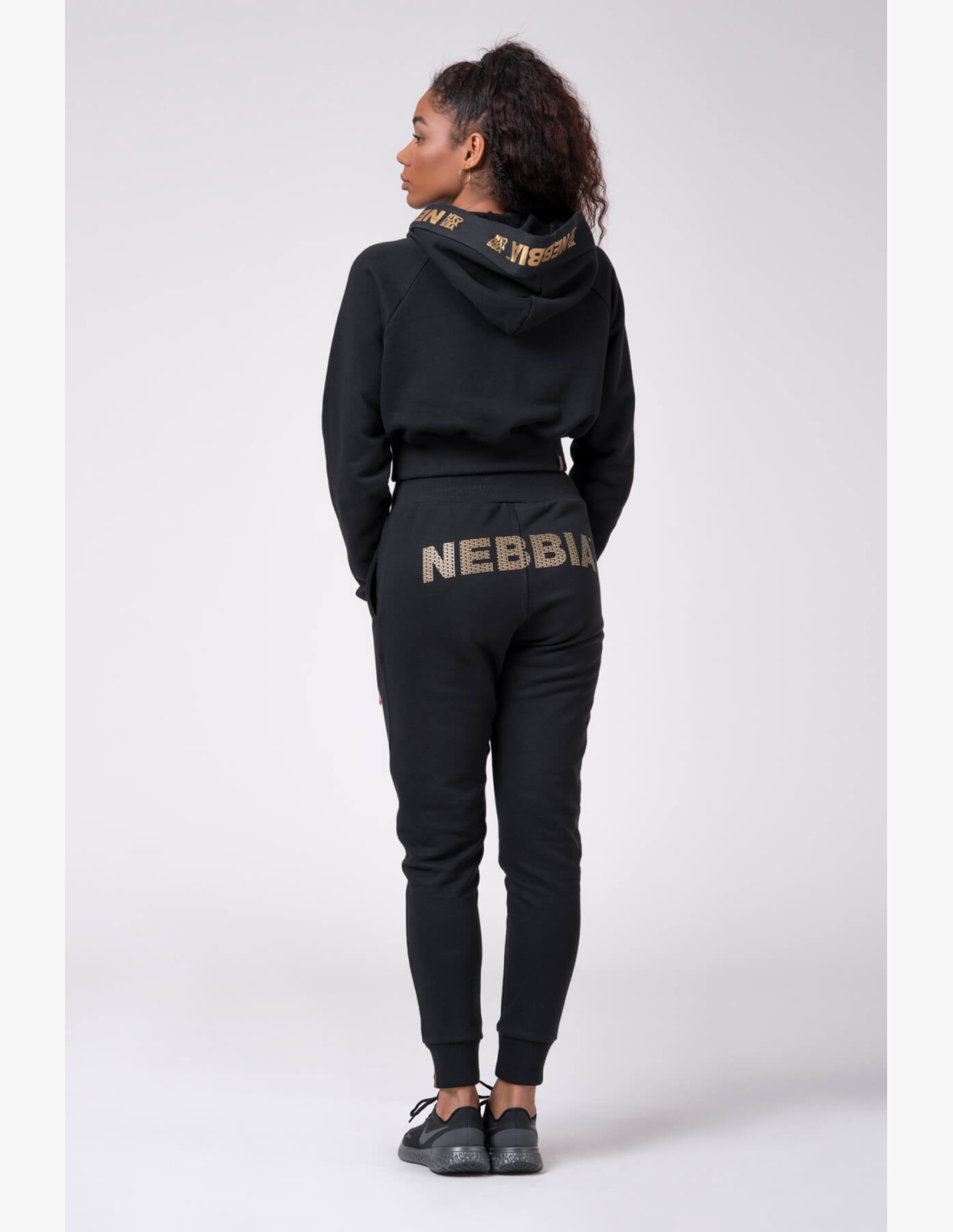 Gold Classic are classic sweatpants for women. They are designed not only for sports activities but also for general occasions such as walks. The sweatpants have a loose fit. There is a firm elastic band sewn into the waistband, which fits nicely on the hips and won't slip down during intense training. There are pockets sewn into the sides. The waistband is threaded with drawstrings that have metal tips. The front features a faux button fastening. The bottom of the pants is finished with a cuff.