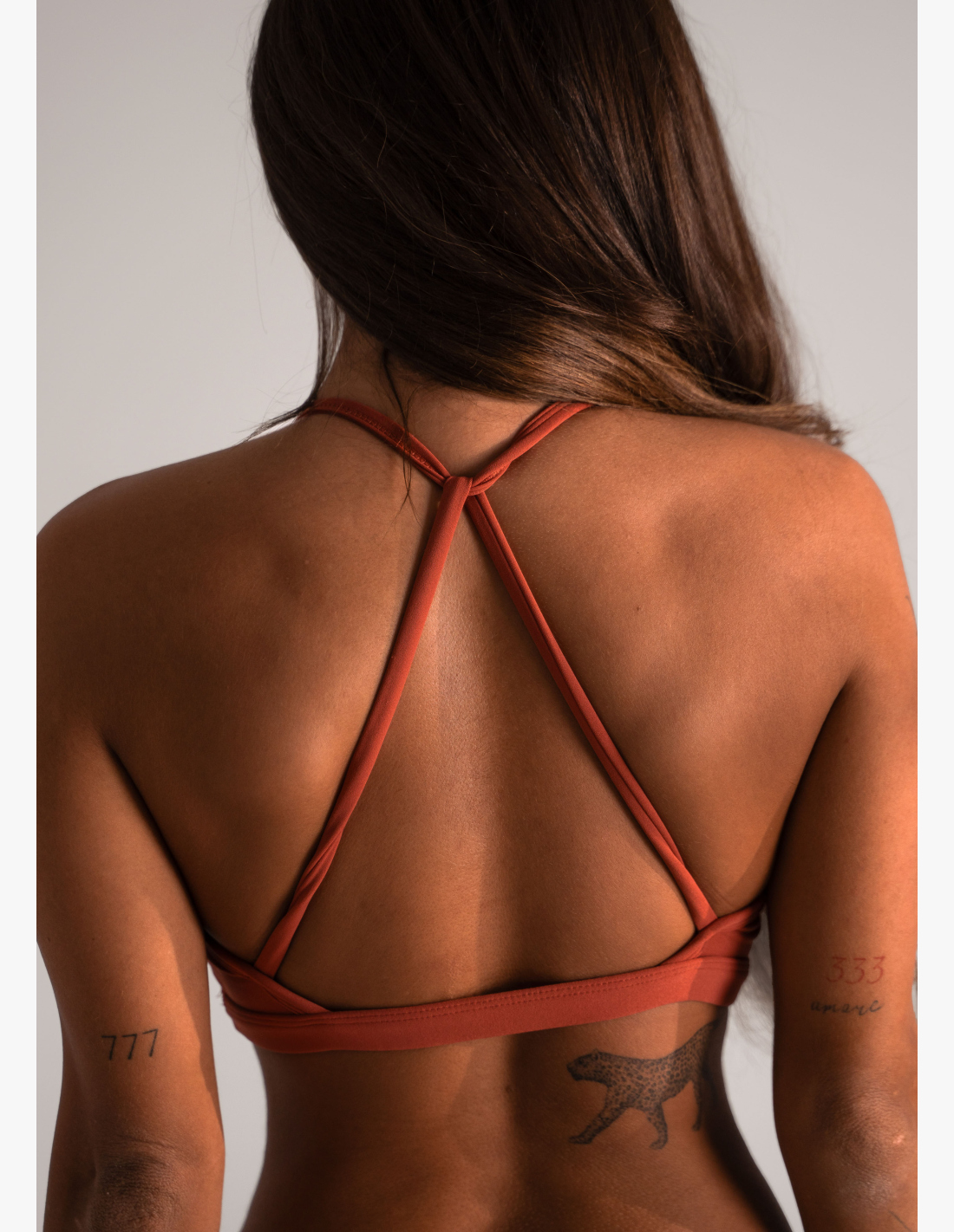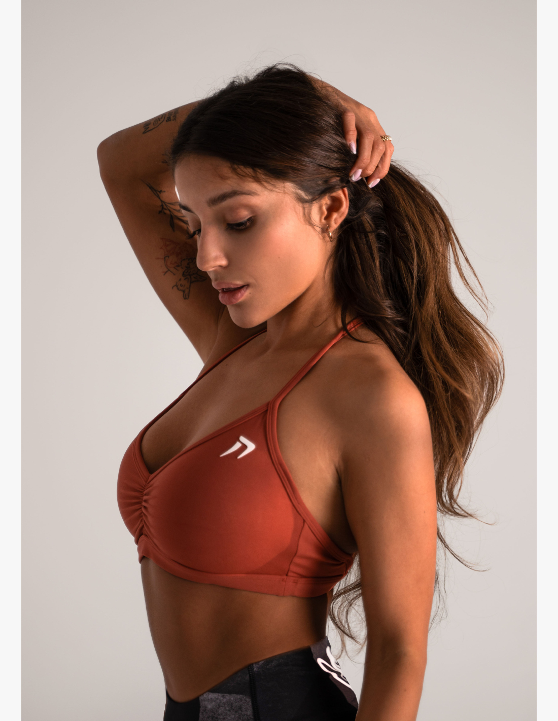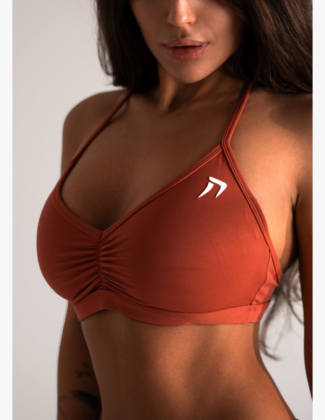 Put on the Brick bra and discover how strength and femininity can come together in one stylish piece. The brick shade with subtle ruching in the front accentuates your style, while the sturdy construction and crossed straps provide the support you can rely on.