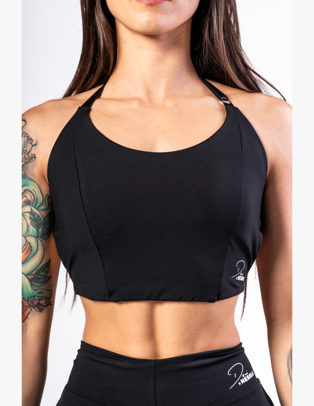 This crop top with an open back was created in collaboration with Denisa and perfectly captures her style – elegant, confident, and playful. It has adjustable straps and removable padding, so you can easily customize it. The silicone strip inside ensures that the top stays exactly where it should. Pair it with flared leggings and create an outfit that stands out at first sight!