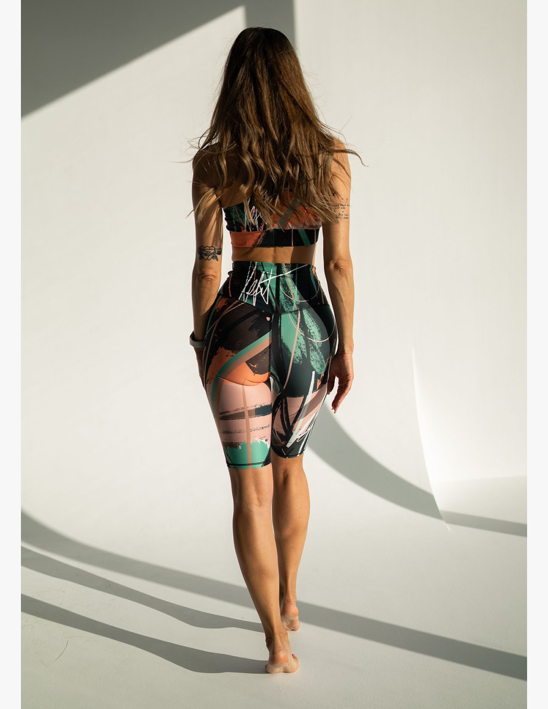 The Terra shorts will brighten up your wardrobe with playful pastel colors, mainly green, and a pattern of asymmetrical designs. They have sturdy seam stitching that ensures beautiful shapes of the body and material strength even during intense physical exertion. Unique design pattern. Made in Slovakia. You can combine them with a bra of the same color. The model is 161 cm tall and wears size S.