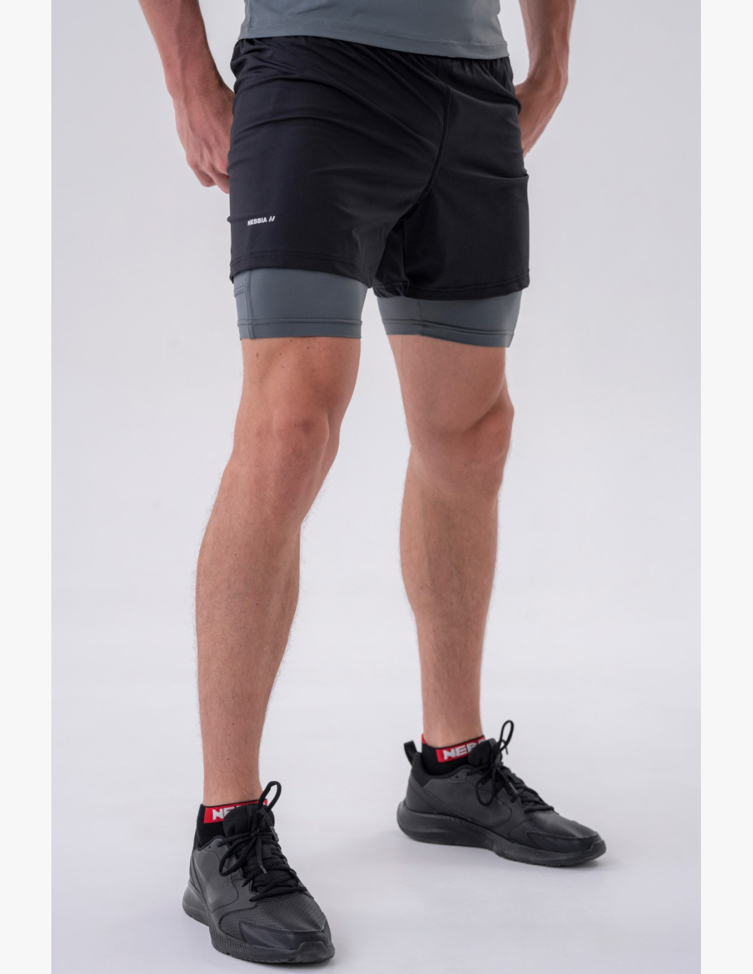 NEBBIA Dual-layer shorts with pockets for mobile phone gray