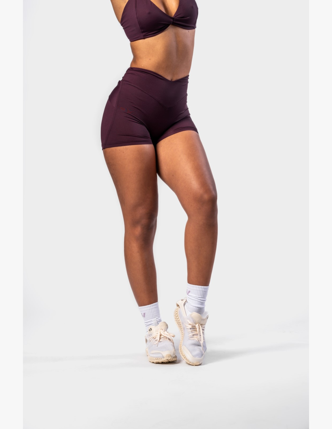 The high waist with a "V" cut visually narrows the waist, while the scrunch butt effect combined with crossed straps on the back lifts the butt and accentuates its shape. Thanks to half-seamless technology, you can rely on maximum comfort and freedom of movement, whether you are training or just want to feel great. Confidence starts with details – and these shorts know it.