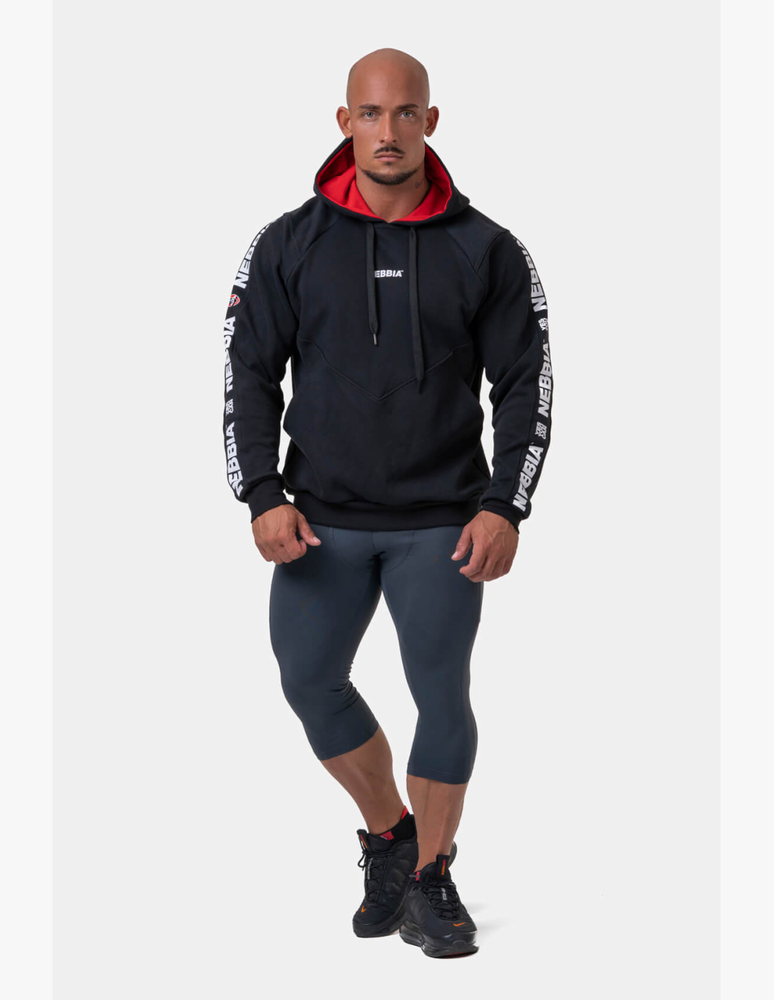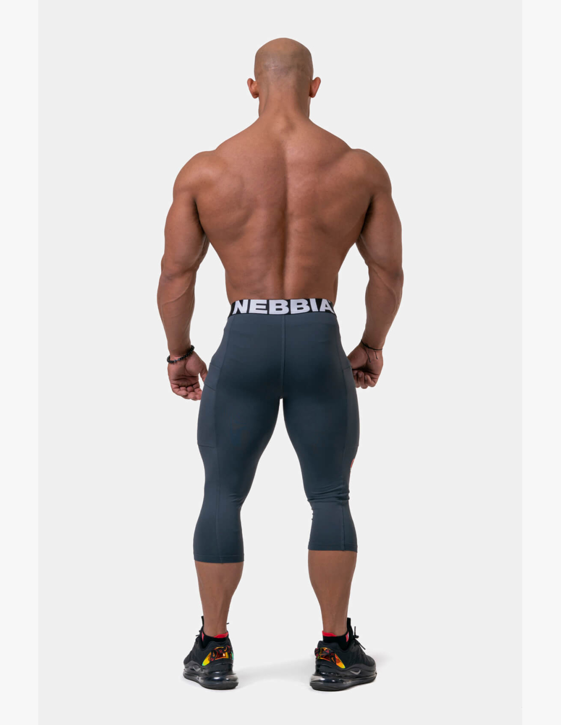 Reflect on the past and let yourself be inspired by your idols from the golden era of bodybuilding, Mr. Olympia, with our new men's collection from 1965. Enhance your training wardrobe with the Legend of Today three-quarter leggings. This design piece features many practical and well-thought-out details. The functional polyamide fabric wicks away sweat and perfectly conforms to the body. The waistband has a wide NEBBIA elastic band that includes silicone "N" on the inside to keep the leggings in place during activities. We have incorporated side pockets for storing your mobile phone or keys. The Mr. Olympia logo adorns the lower part of the thigh.