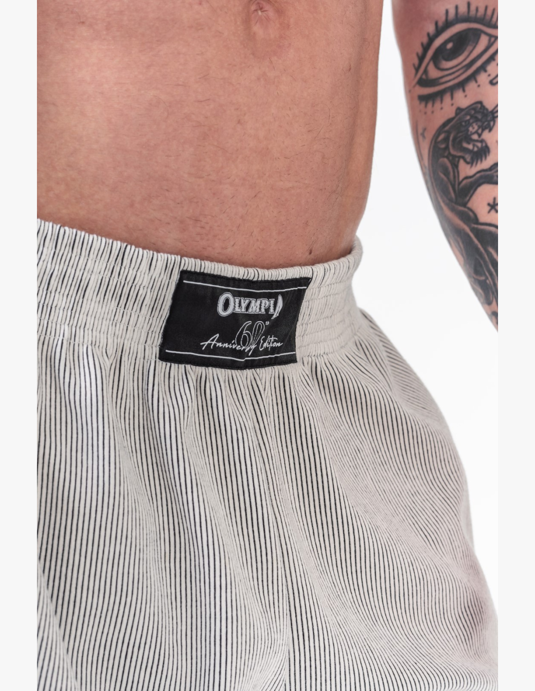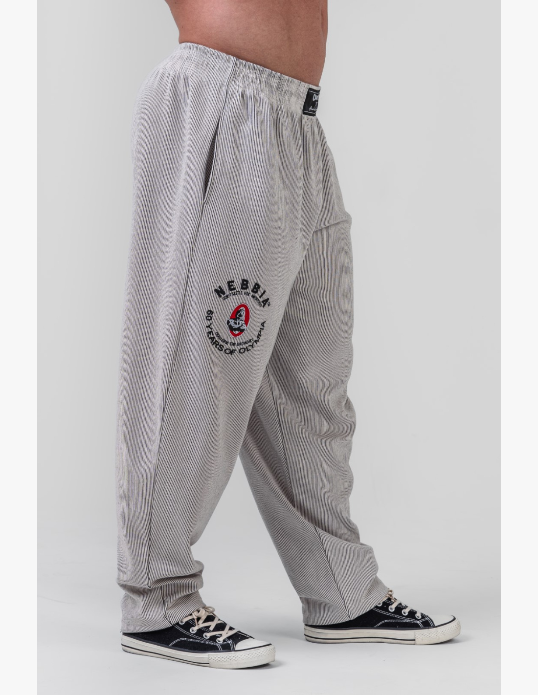 Casual fit, elastic waist, and pinstripe pattern – a combination that won't hold you back whether you're training or chilling. Every detail resonates with the spirit of American gyms where legends were made. The NEBBIA logo and Mr. Olympia elements remind us that this era doesn't end – it continues with you.