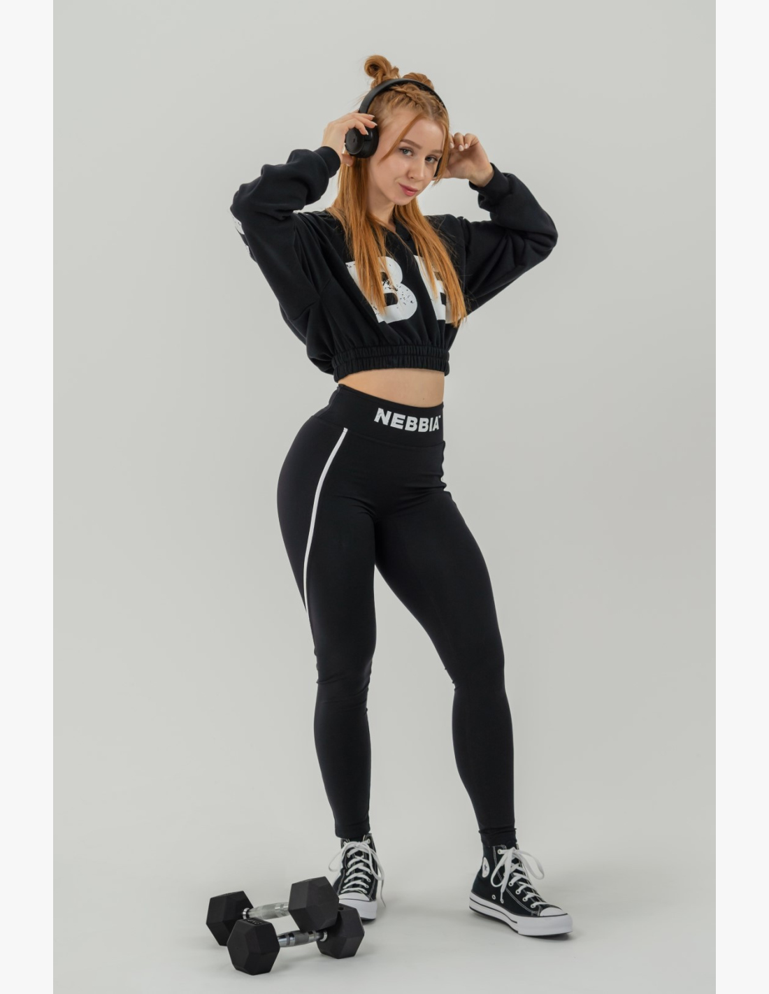 The hoodie with a hood and striking print is a bit vagabondish, and that’s just the right dose of coolness! It works perfectly for warm-up and the first set in the gym! But it's also great for lounging at home, city outings, shopping for healthy food, or even attending lectures. It’s just ideal everywhere. Your crop hoodie is the foundation of your gym fit, which is actually your everyday outfit. And that’s amazing!