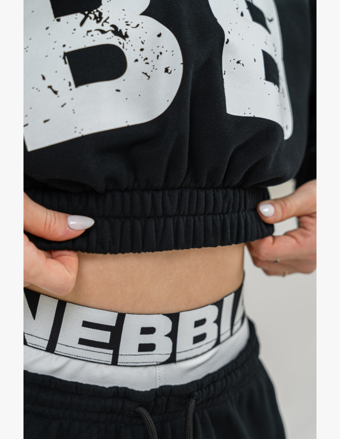 NEBBIA Crop top hoodie MUSCLE MOMMY black