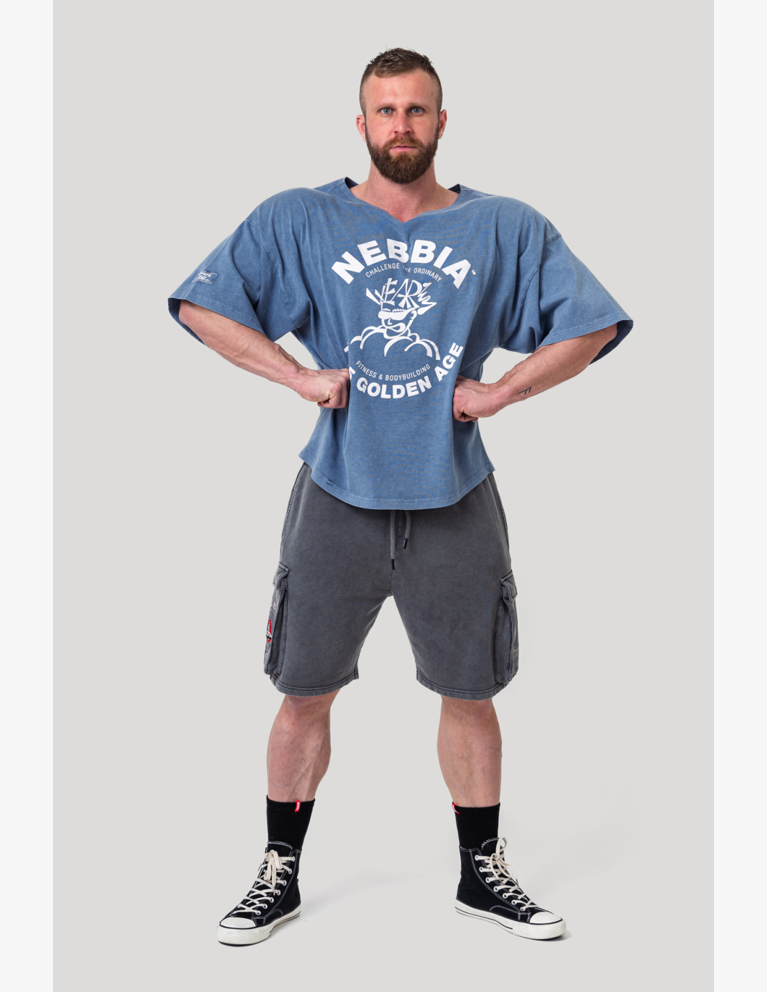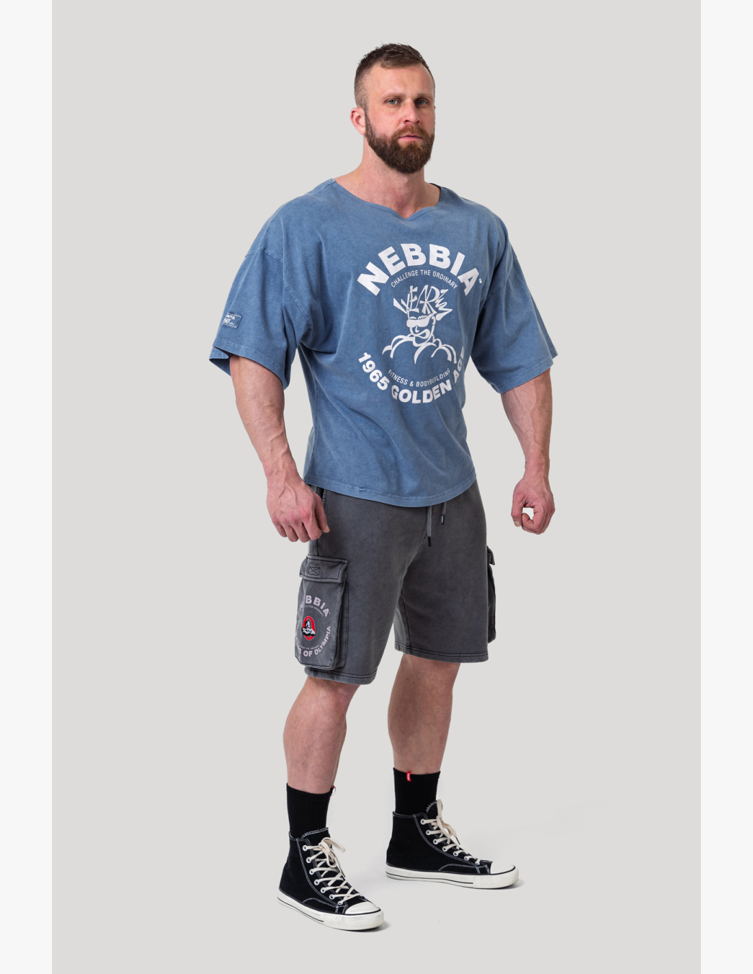 The rag top cut is a perfect choice – loose for maximum comfort while emphasizing what matters: Shoulders, chest, biceps – everything you work hard for will be absolutely unmissable. The special washed-off effect adds a stylish retro touch. With the prominent NEBBIA and Mr. Olympia logos along with the Golden Age 1965 graphic, the legends of bodybuilding are always with you. Whether you’re grinding in the gym or going out in the city, this t-shirt will always connect you with the true spirit of bodybuilding.