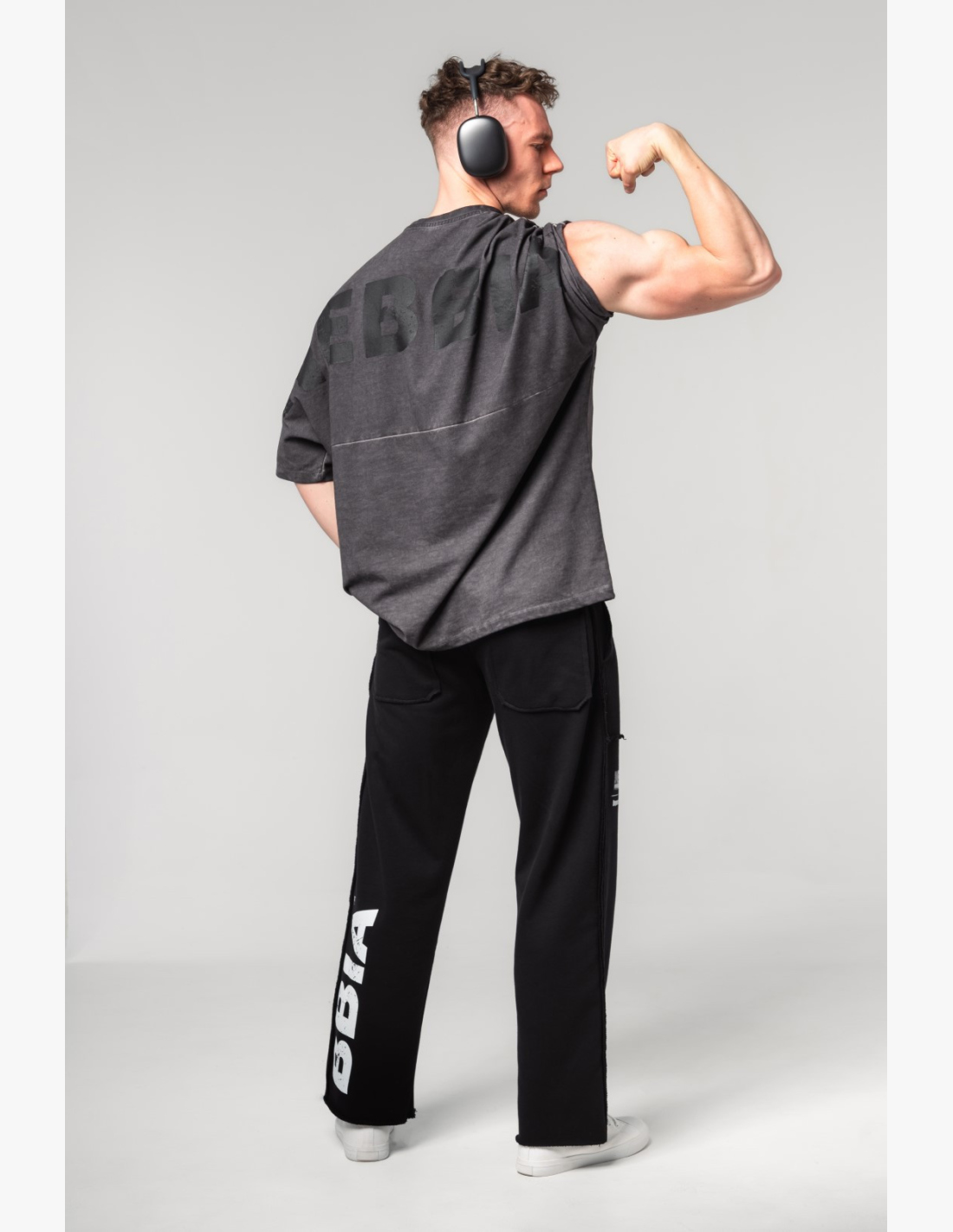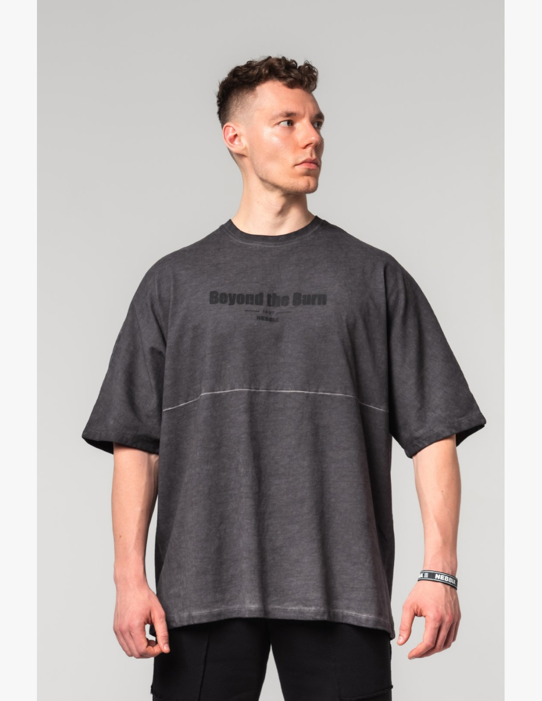 The oversized t-shirt with longer sleeves is exactly what will help you highlight your figure. The extra loose fit with dropped shoulders will give you a more robust appearance, and the bold NEBBIA print will accentuate your broad back. The heavy cotton with a washed effect will also visually enlarge your chest.