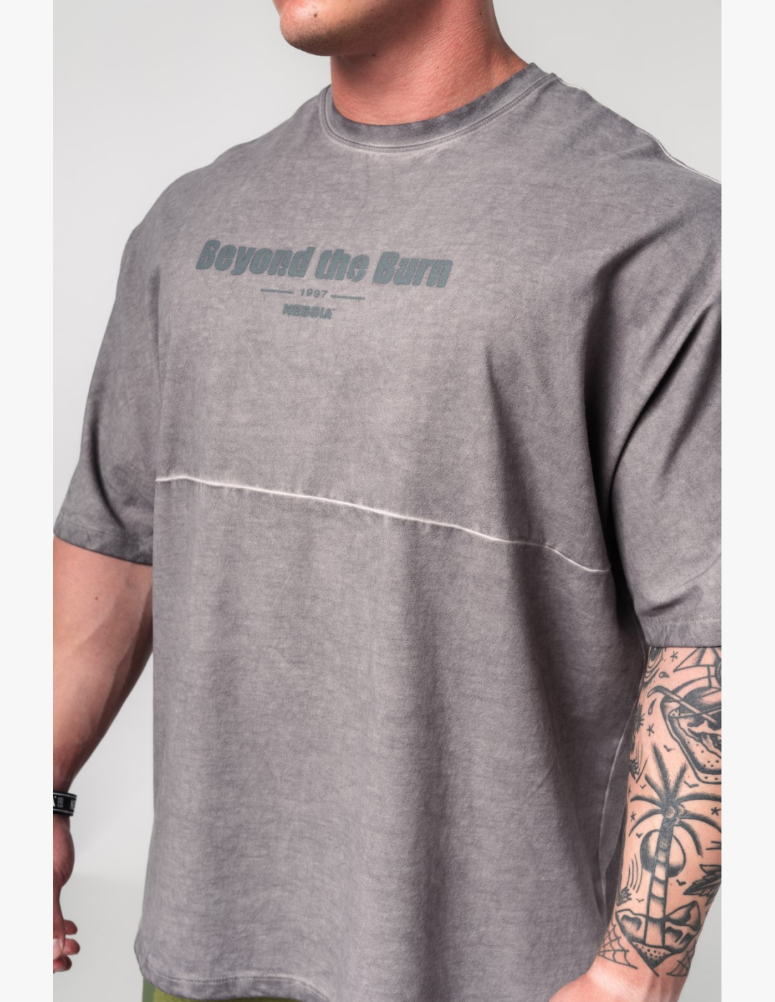 NEBBIA Washed-off oversized T-shirt NO SHORTCUTS gray
