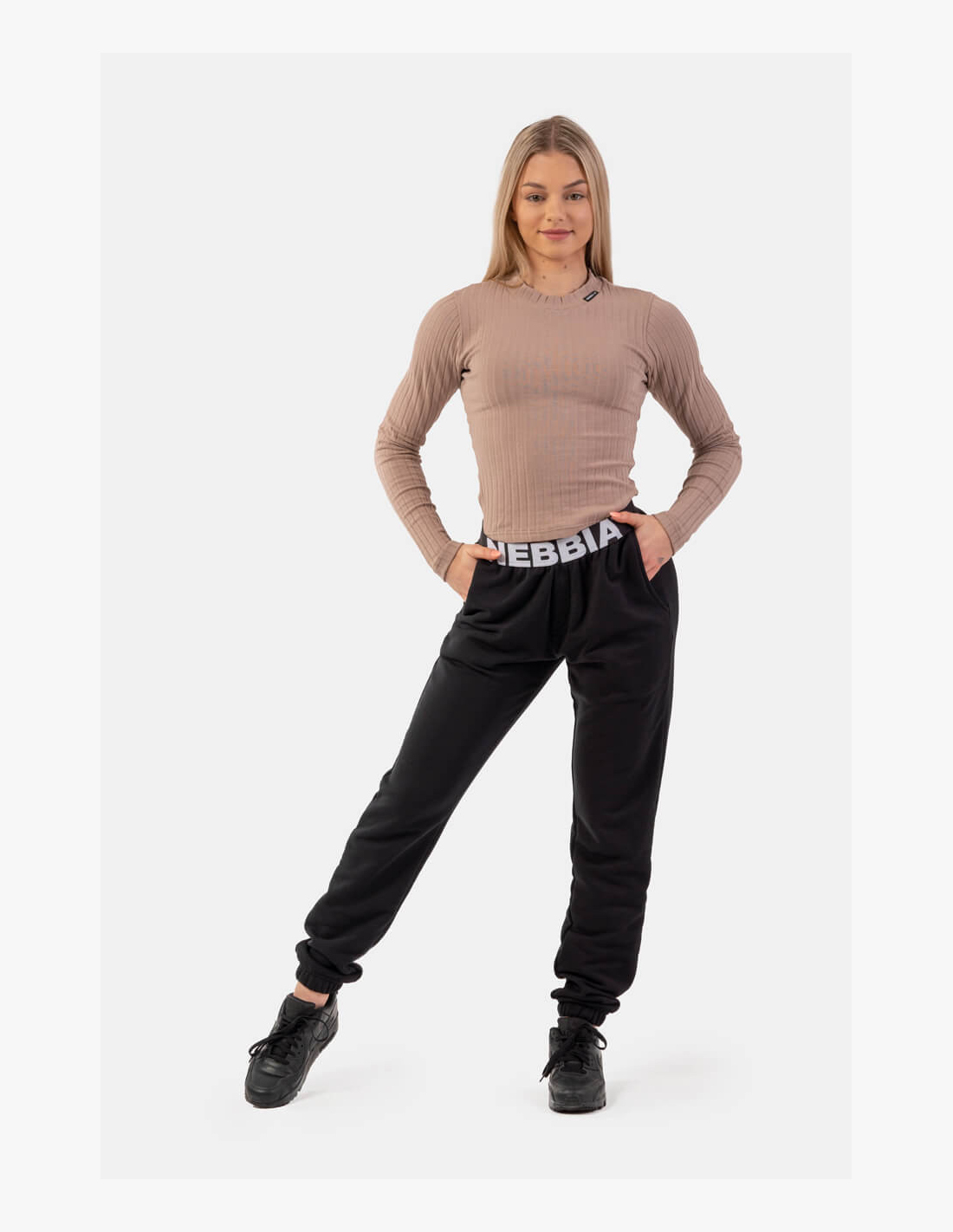 NEBBIA Ribbed long sleeve shirt made of organic cotton brown