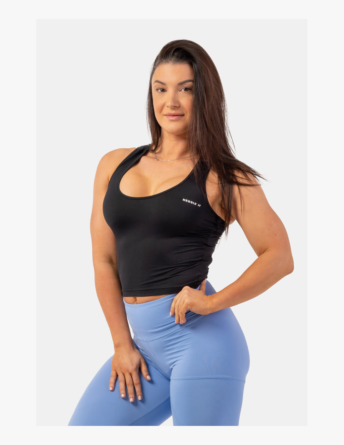 Don't know how to dress for summer sports activities or for the gym? We have created the perfect slim-fit top that is cut to the waist. The material is highly functional and stretchy, so you won't be restricted at the gym. You can wear it with NEBBIA leggings that have a high waist, which will cover your belly.