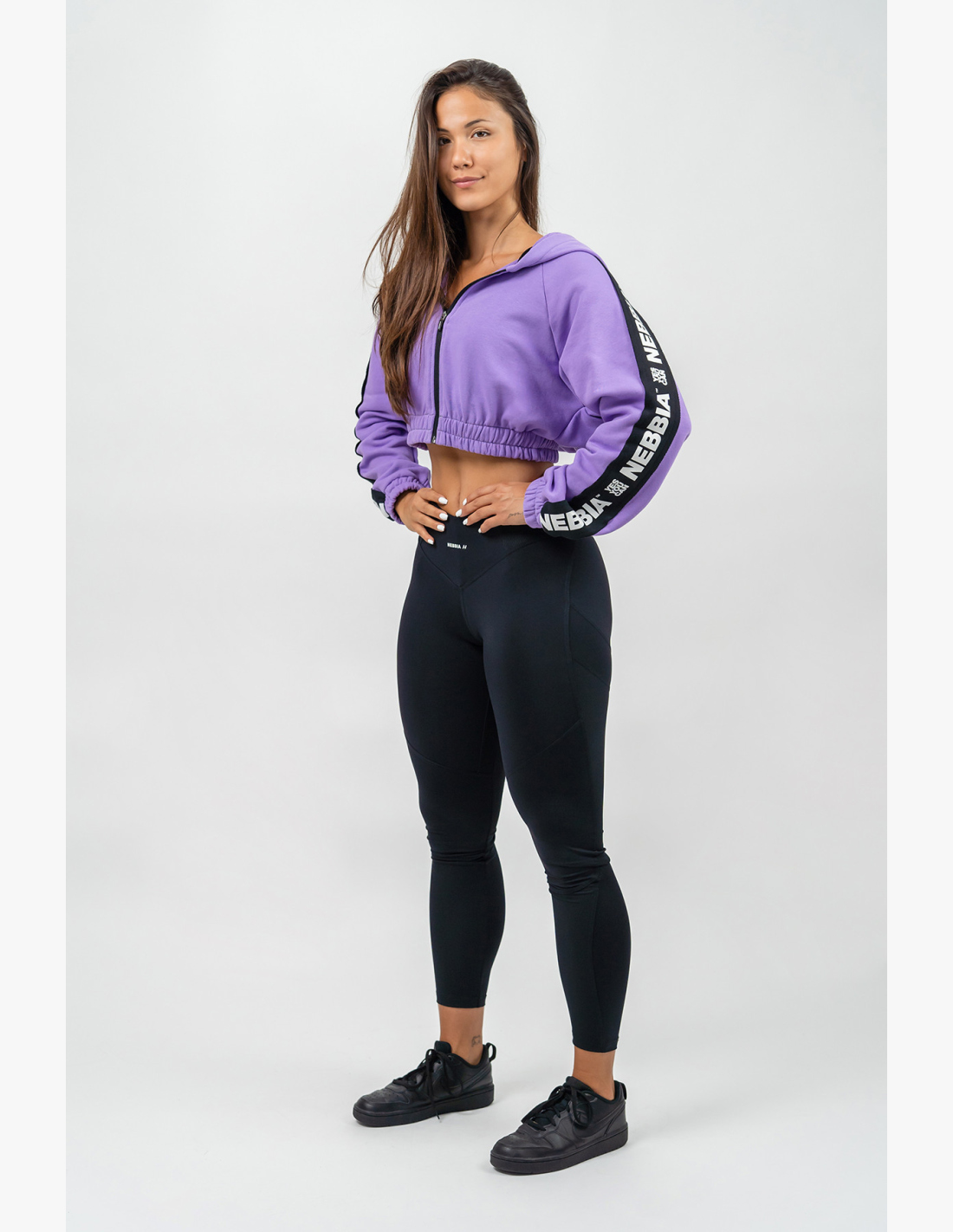 NEBBIA • Felpa cropped con cappuccio ICONIC lilla • Nebshop.cz