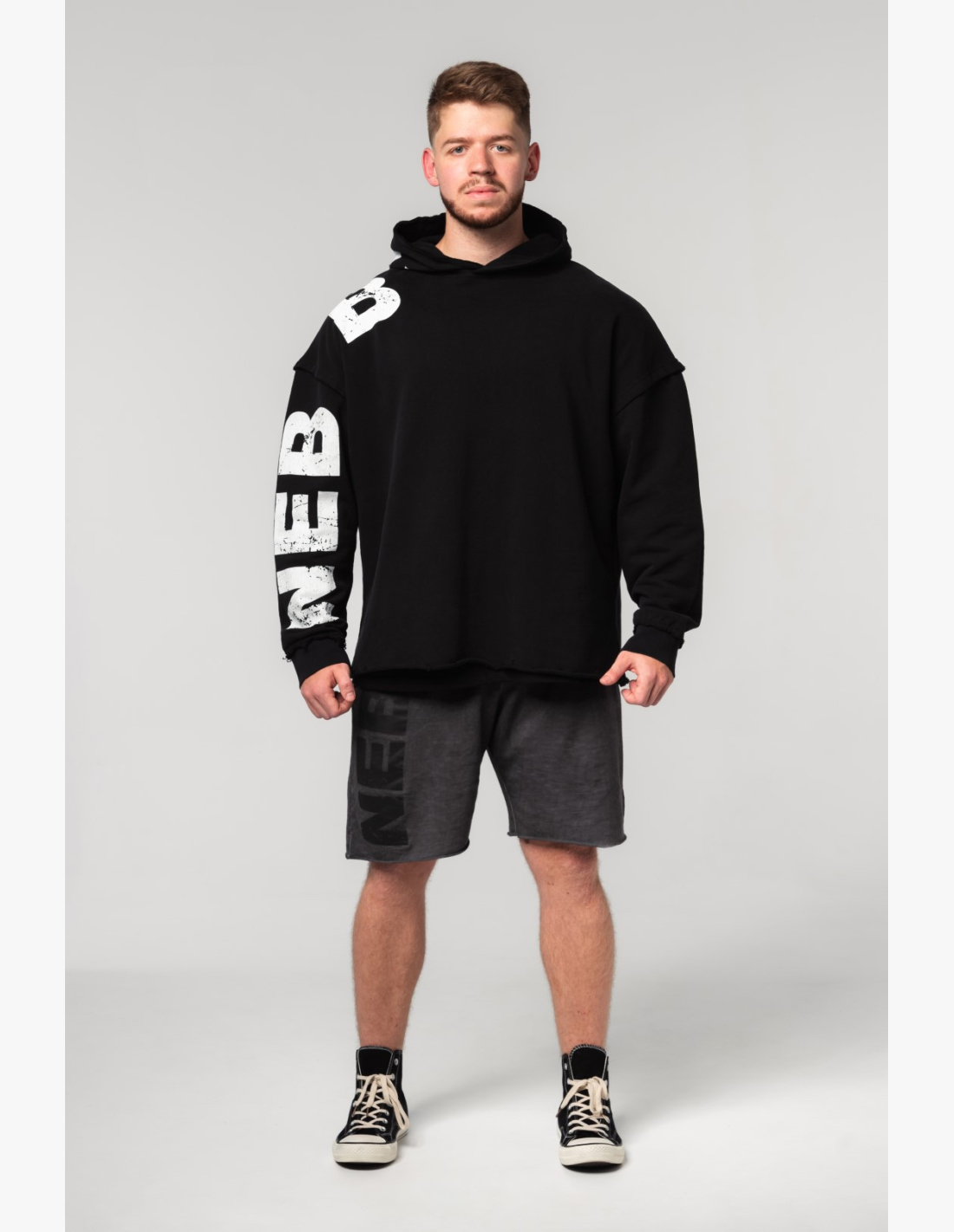 Il taglio oversized ti ingrandisce otticamente e l'effetto "raw" non rifinito porta l'atmosfera iconica dell'era del gym degli anni '90. Indossa il cappuccio. Ascolta la tua playlist preferita. E riscaldati prima dell'allenamento con la felpa NEBBIA.