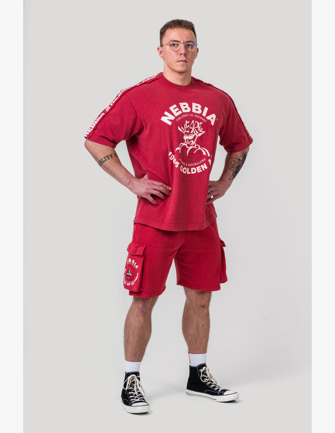 Il taglio largo garantisce assoluta libertà di movimento, mentre l'effetto washed-out conferisce ai pantaloni uno stile retro old-school. Grazie alle pratiche tasche cargo, hai a disposizione tutte le necessità per poterti concentrare completamente sul tuo allenamento. Il logo distintivo NEBBIA e il branding di Mr. Olympia sulle tasche rendono omaggio alla comunità fitness e all'era d'oro del bodybuilding!