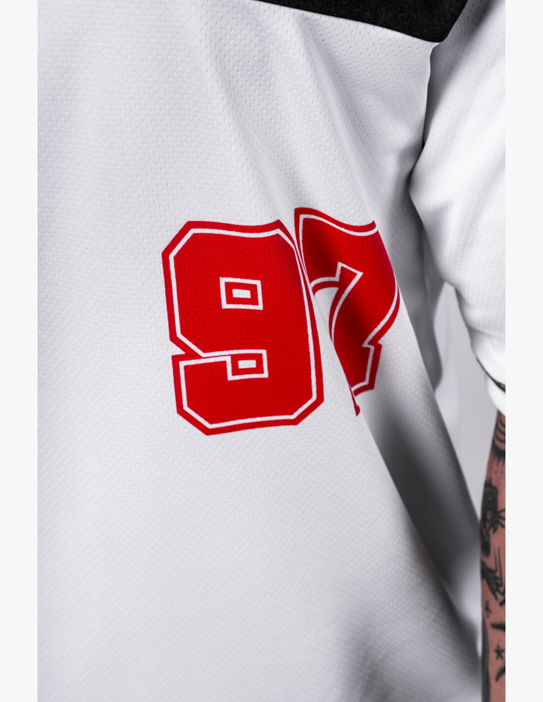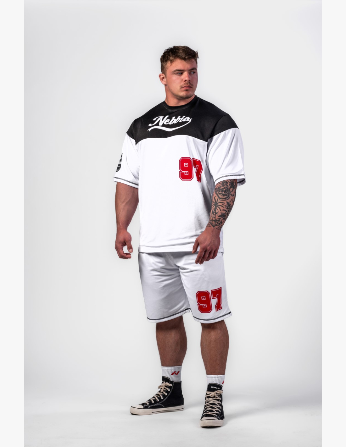 Questa maglietta sportiva combina un aspetto iconico con massima funzionalità. Il materiale leggero e a rete allontana il sudore e ti mantiene fresco anche durante gli allenamenti più impegnativi. È resistente all'usura, perfettamente traspirante e progettata per non limitare alcun movimento.