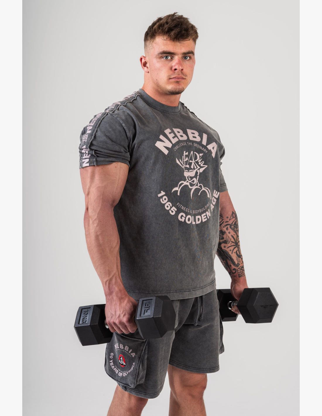 Grazie alla vestibilità oversized e al robusto 100% cotone, ti garantirà la massima libertà di movimento durante gli allenamenti e il comfort che dura tutto il giorno. Senza compromessi. L'effetto lavato crea un aspetto rétro autentico che mette in risalto il tuo stile deciso. Il logo NEBBIA ben visibile insieme al branding di Mr. Olympia ti motiveranno costantemente ricordandoti l'era d'oro del bodybuilding, sia che ti alleni o che ti goda il tempo libero in città.