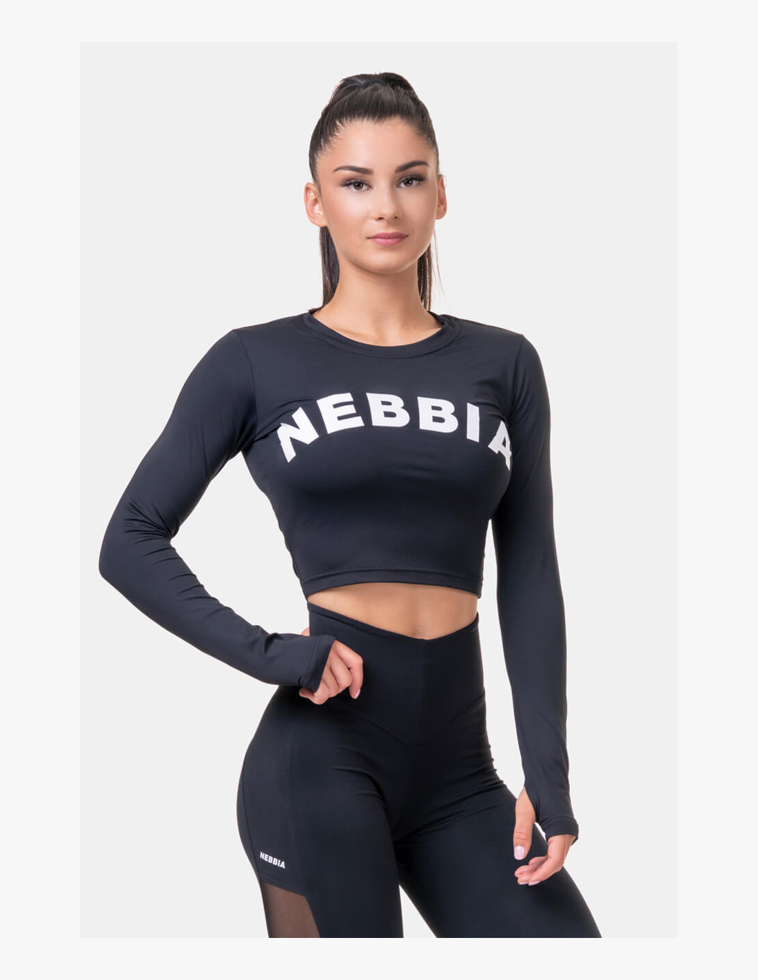 NEBBIA Sporty HERO crop top con maniche lunghe nero