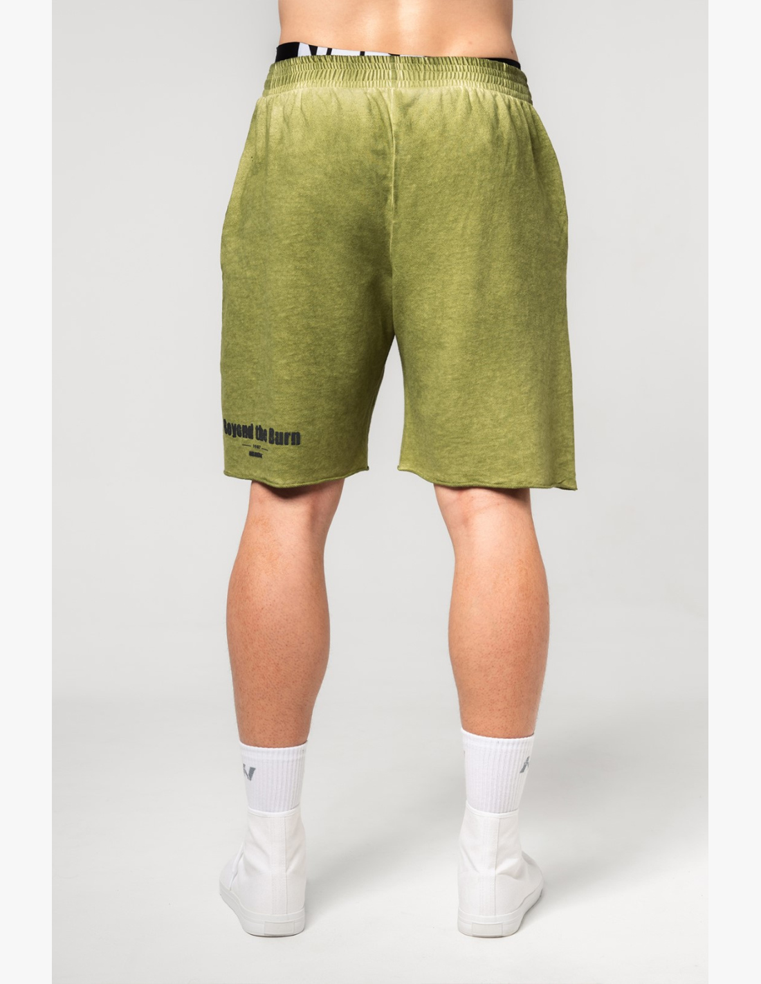 Volné kraťasy z měkké bavlny fakt nic nepředstírají. Nedokončené "raw" okraje a správná délka zvýrazňují kvadricepsy a dodávají feeling drsné gym éry 90tek. Stejně jako trendy sepraný washed-off look. Potlač "Beyond the Burn" vzadu mluví za vše.