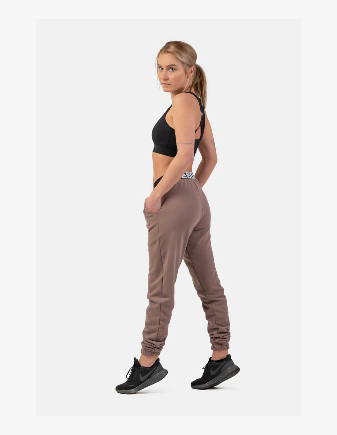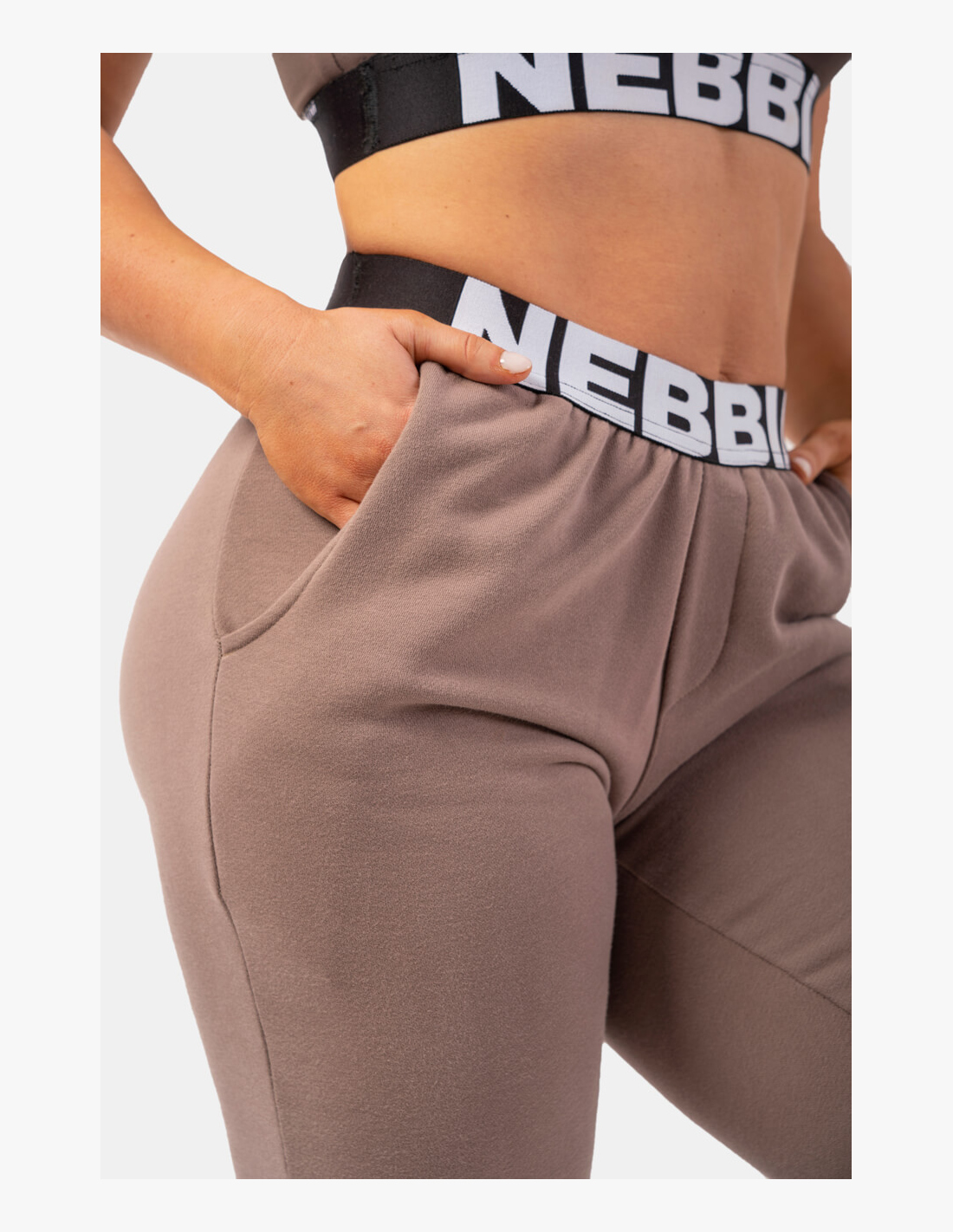 NEBBIA Tepláky Iconic s elastickým pasem NEBBIA hnědá