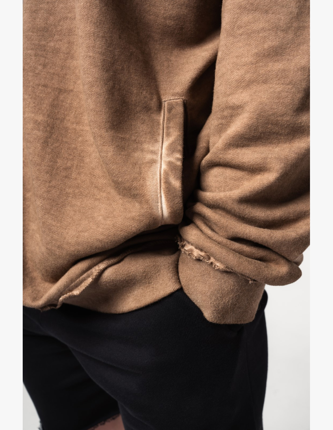NEBBIA Washed-off mikina na zip GYM BRO hnědá