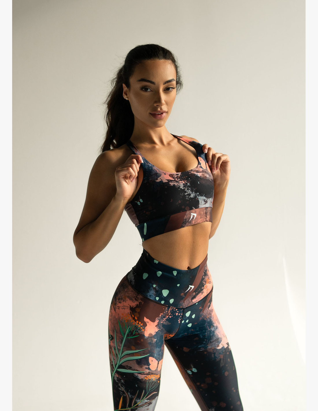 Podprsenka Butterfly má krásný a jednoduchý design v podání tmavších zemitých barev a minimalistických motýlů. Podprsenka je běž výztuže, má pevný ale zato přizpůsobivý spodní lem a přiléhavý prodyšný materiál. Zkombinuj si tento kousek s legínami stejného designu.