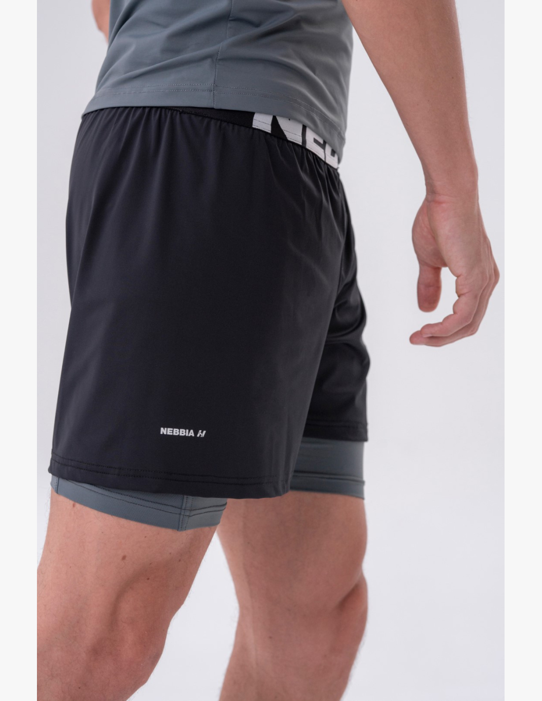 NEBBIA • NEBBIA Dvojvrstvové šortky s vreckami na mobil šedé • Nebshop.sk