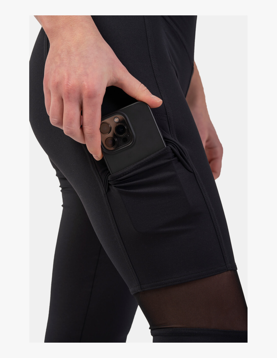 Tieto legíny sú vhodné pre všetky športové aktivity, vďaka bočnej kapse, do ktorej si môžeš odložiť mobil, kľúče alebo iné. Power materiál je vysoko funkčný a zabraňuje nežiaducim škvrnám potu. Nezabudnime na elegantnú sieťku a reflexný prvok.