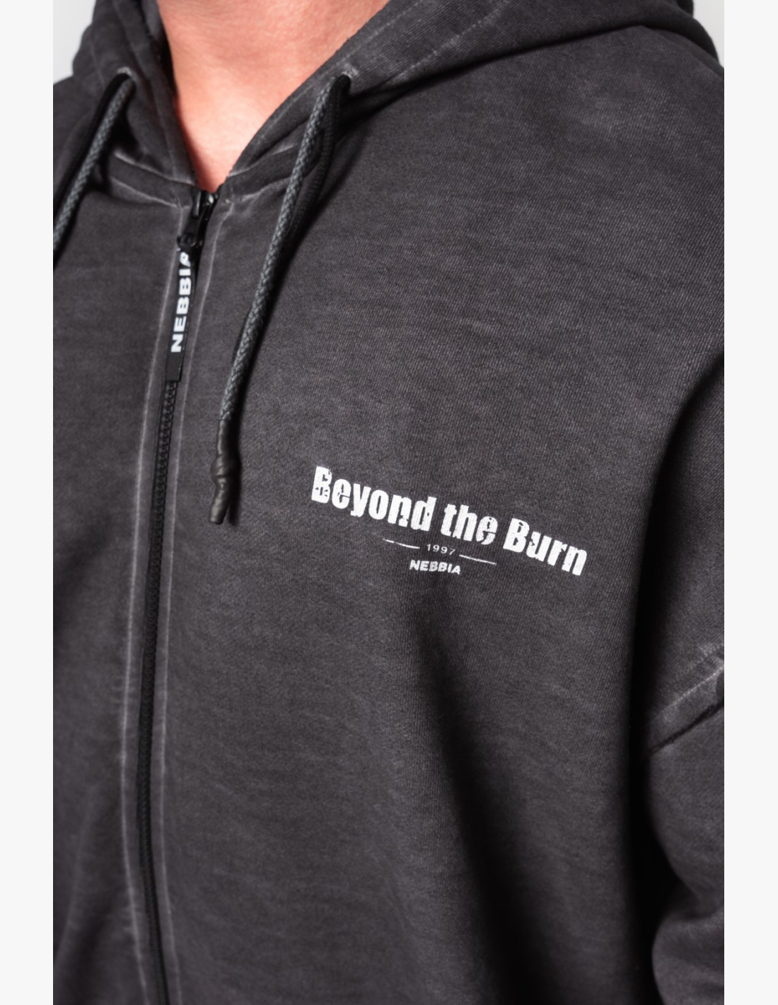 NEBBIA Washed-off mikina na zip GYM BRO čierna