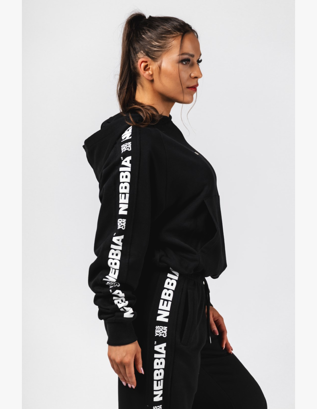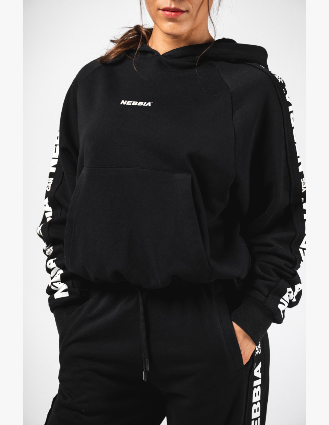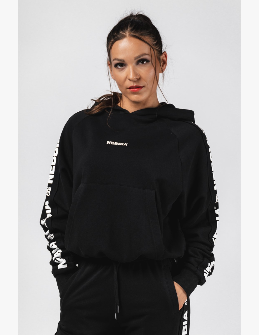 Voľný strih s oversized kapucňou, mäkký vnútorný fleece a ikonický lampas NEBBIA – presne to, čo zapadne do tvojho každodenného lifestyle. V kombinácii s teplákmi získaš dokonalý OFF-DAY set, ktorý dokazuje, že aj počas relaxu zostávaš verná svojmu gym spiritu.