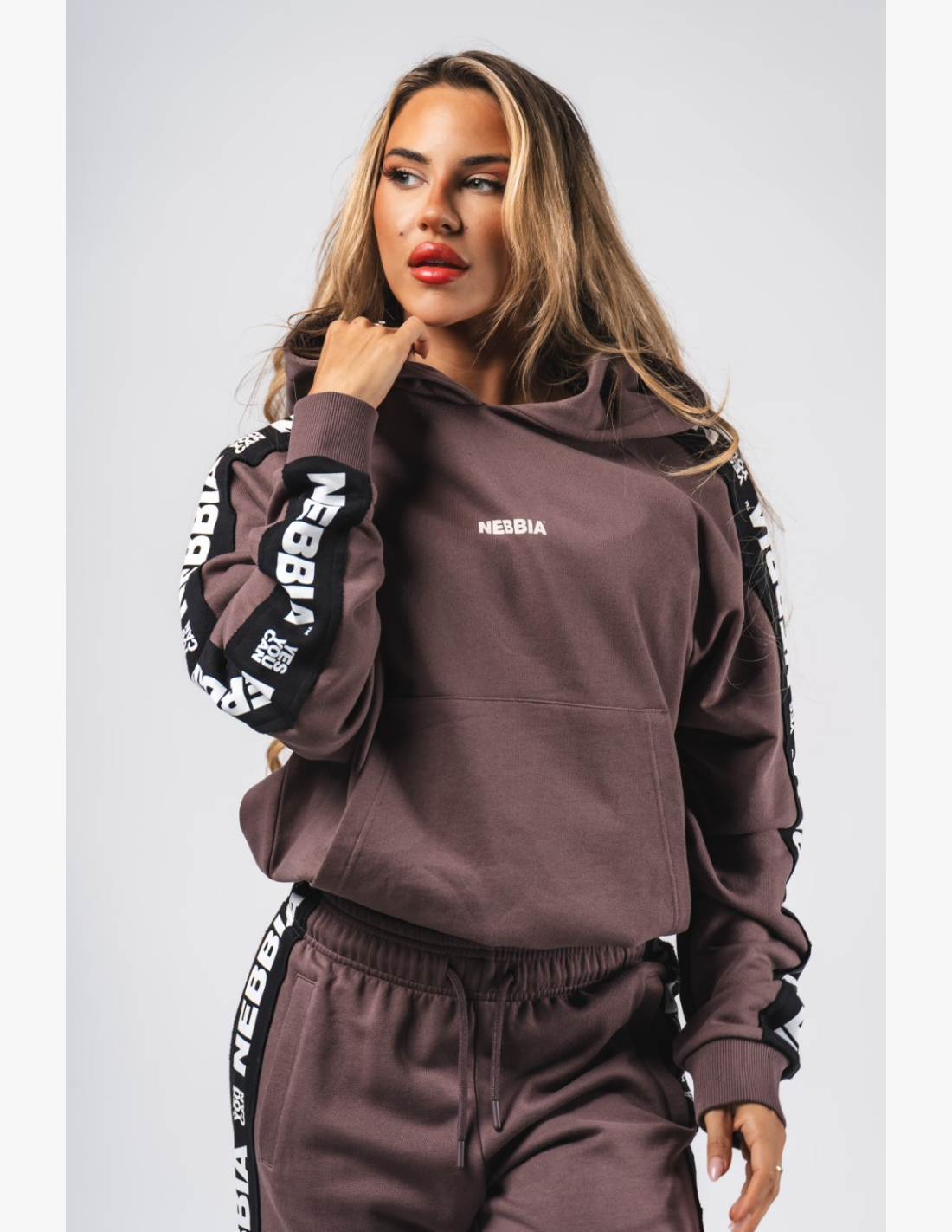 Voľný strih s oversized kapucňou, mäkký vnútorný fleece a ikonický lampas NEBBIA – presne to, čo zapadne do tvojho každodenného lifestyle. V kombinácii s teplákmi získaš dokonalý OFF-DAY set, ktorý dokazuje, že aj počas relaxu zostávaš verná svojmu gym spiritu.