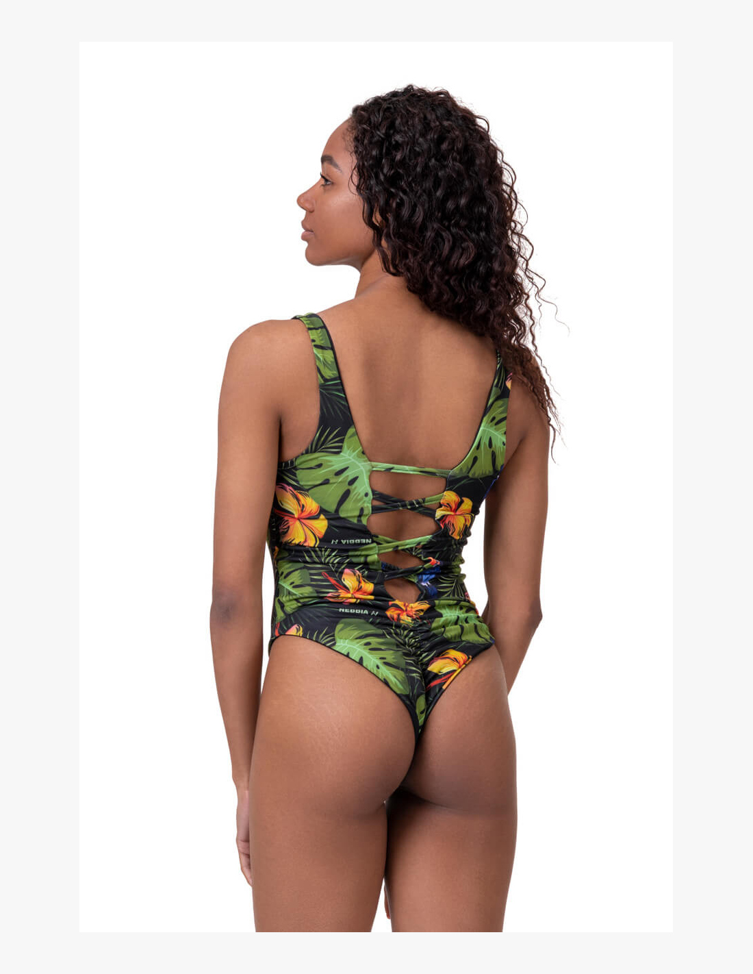 Vyrazi do leta štýlovo v novej krásnej a originálnej kolekcii plaviek 2021, ktorá je cielená pre aktívne dámy, ktoré rady ukážu svoje prednosti. NEBBIA monokini žiari pozitívnymi letnými farbami a upúta originálnym strihom. Nápadité šnurovanie zdobí chrbát a v prednej časti kovové logo NEBBIA spája diely do zmyselného výstrihu. Zadná časť je spestrená riasením "scrunchies butt", ktoré vyformuje tvoje krivky do požadovanej formy. Monokini NEBBIA sú prešité dvakrát, aby nepresvitali. Na výber sú tri farebné prevedenia v sýto žltej, elegantnej čiernej a vzorovanej so zvieracím-raslinným motívom.