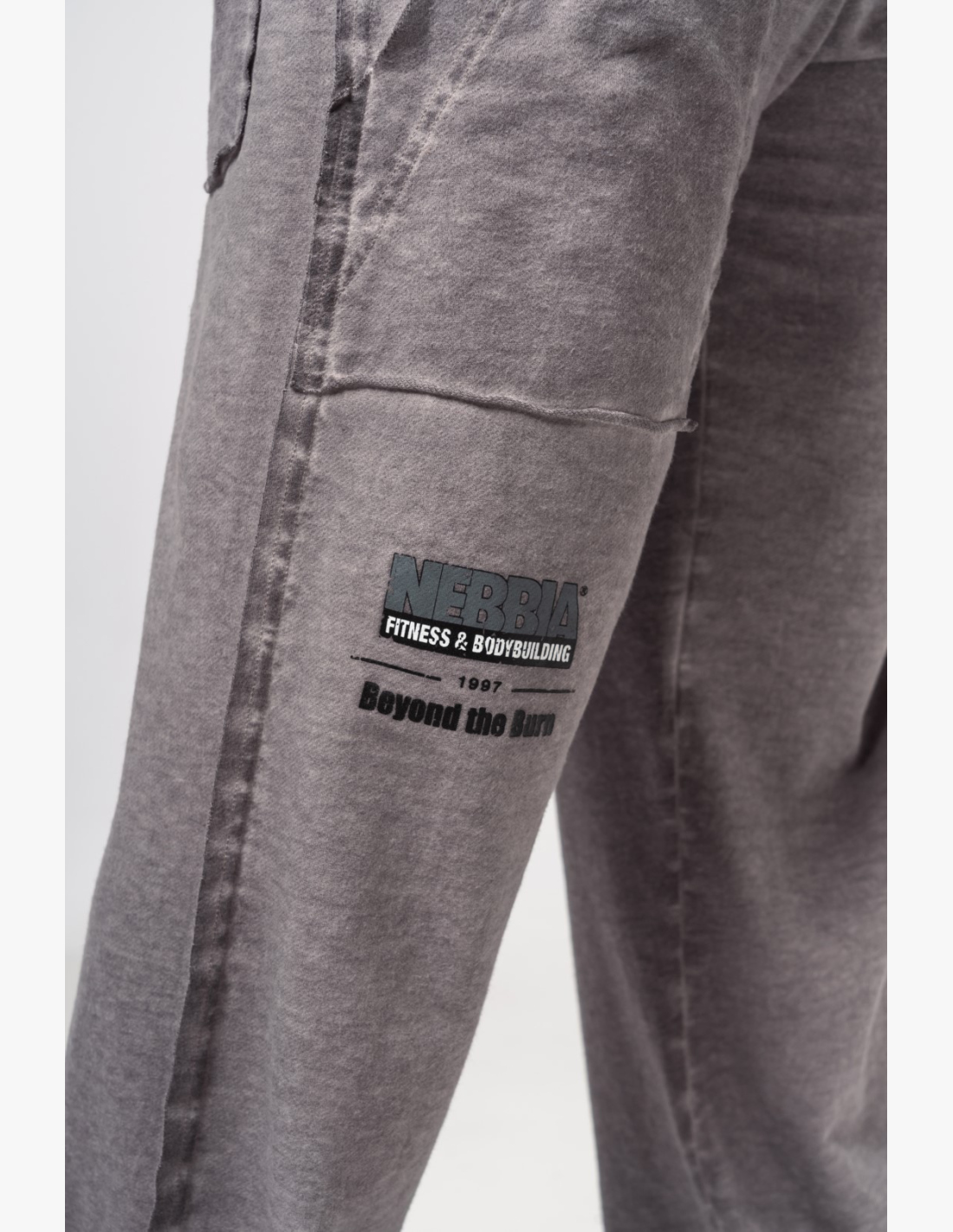 NEBBIA Washed-off tepláky s kapsami NO SHORTCUTS šedé