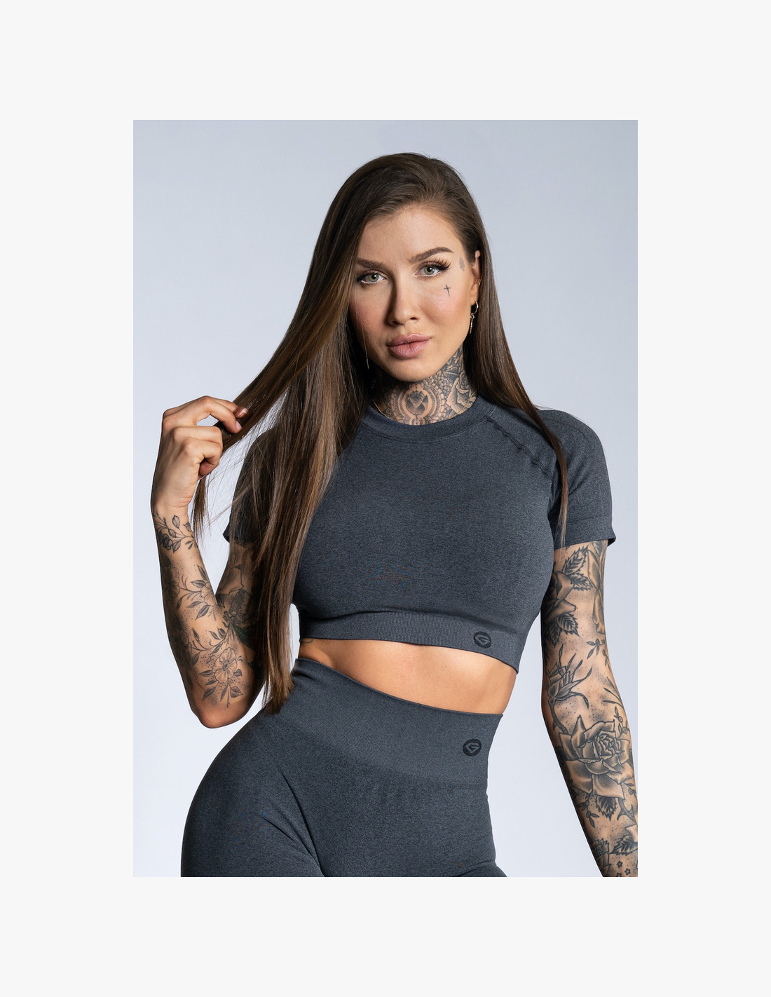 Crop top Gym Glamour s krátkym rukávom tmavosivý ombré
