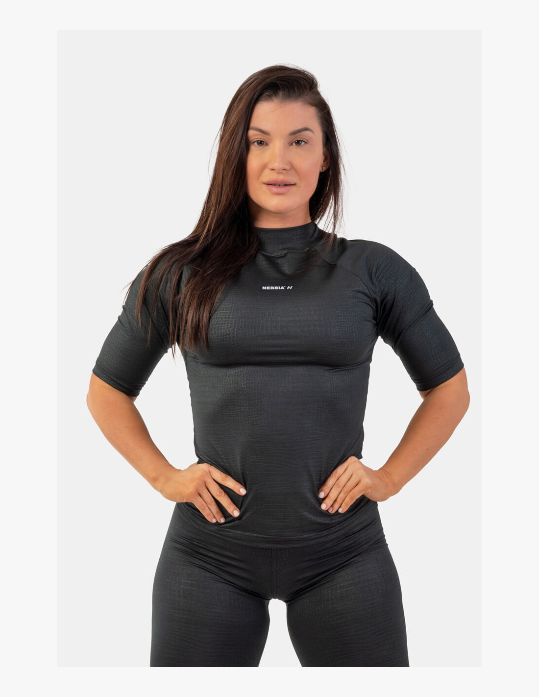 Toto dámske tričko v prevedení hadiej kože si budeš chcieť obliecť každý deň, vďaka pružnému materiálu, ktorý je vysoko funkčný a priedušný. Slim-fit strih a rolák oživia tvoj outfit či už do fitka alebo do mesta.