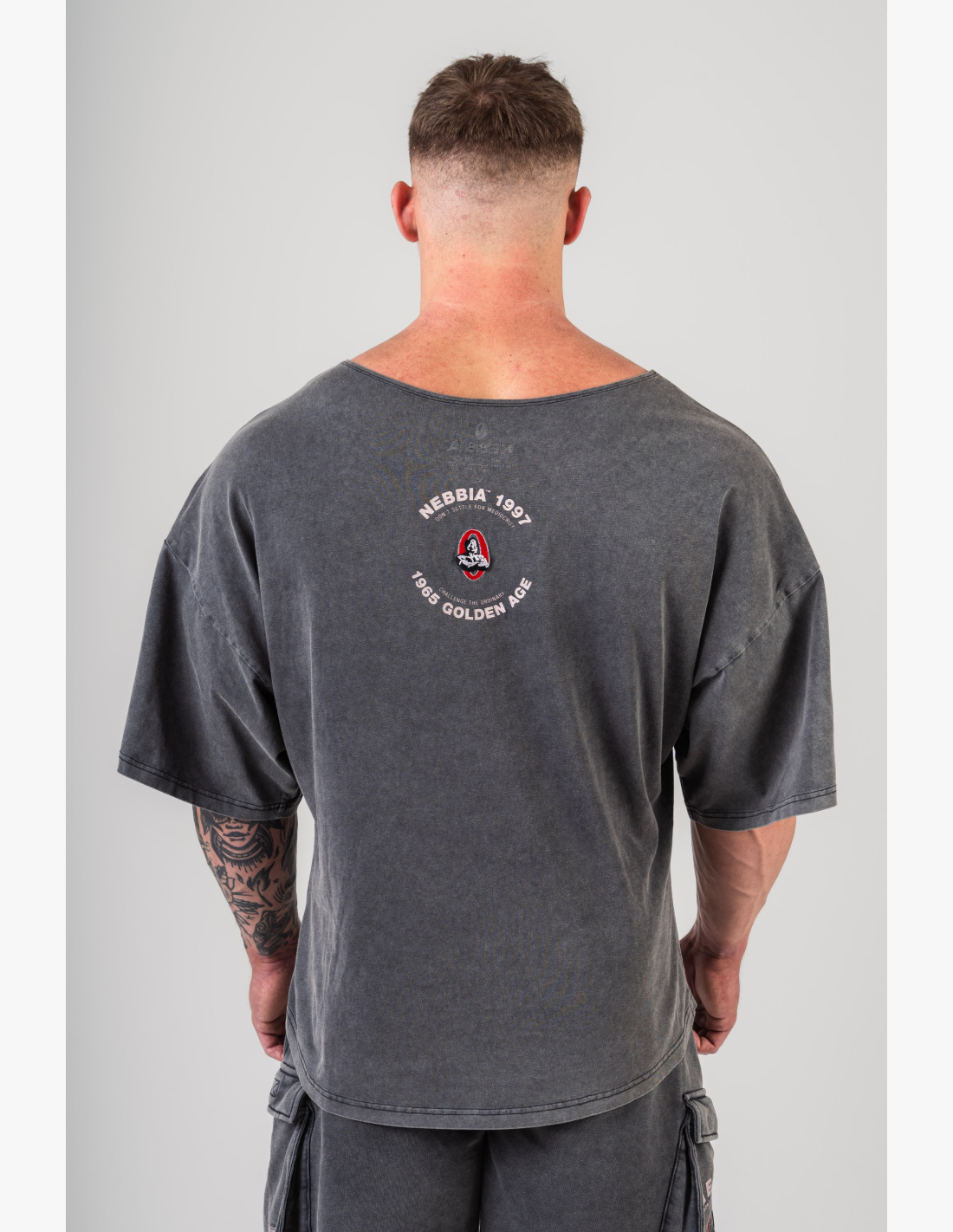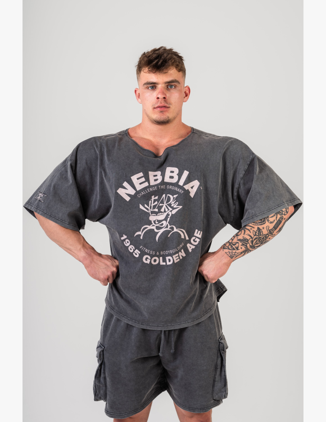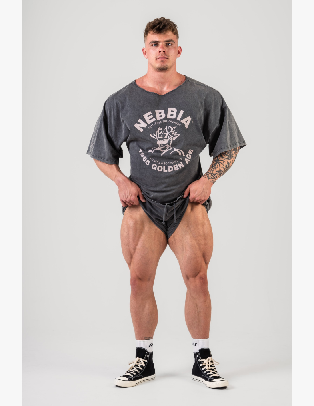 Rag top střih je perfektní volba – volný pro maximální pohodlí, ale přitom zdůrazní, co je důležité: Ramena, hrudník, bicepsy – všechno, na čem tvrdě makáš, bude naprosto nepřehlédnutelné. Speciální washed-off efekt přidává stylový retro nádech. Díky výraznému NEBBIA a Mr. Olympia logu spolu s grafikou Golden Age 1965 jsou legendy kulturistiky pořád s tebou. Ať už dřeš v gymu nebo jdeš do města, tohle tričko tě vždy propojí s pravým duchem kulturistiky.